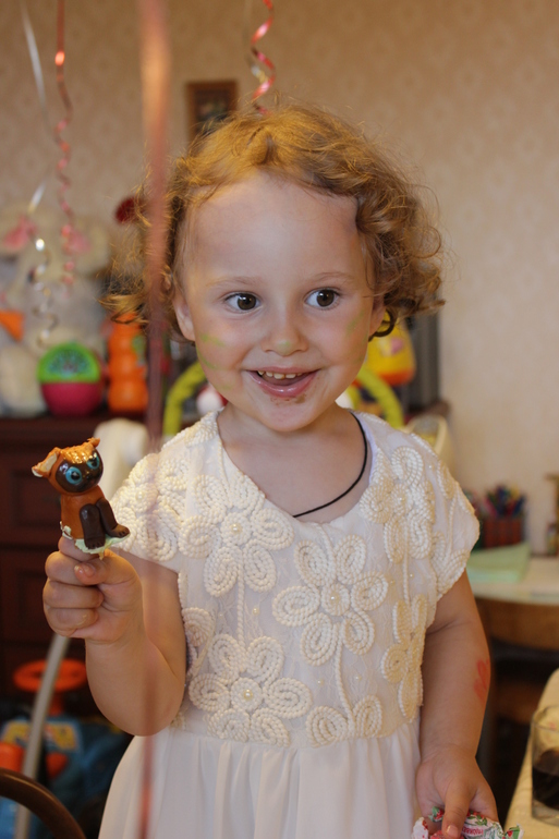 Главным условием заказа было, чтобы тортик могли кушать дети 3-х лет и младше, т.е. минимум сахара и всяких добавок. Плюс не хотелось покрывать его мастикой. Но в тоже время, чтобы он был с фигурками и вкусный) Ирине все удалось за что ей огромное спасибо. Дети пищали от восторга. Доча сразу почему то съела сосиску) А через минуту и Гав с щенком были безжалостно съедены)