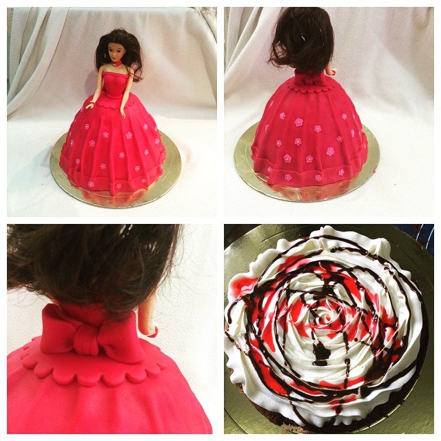 внутри красный бархат, маскарпоне-чиз, шоколадный и клубничный сиропы. Вес 2,5.