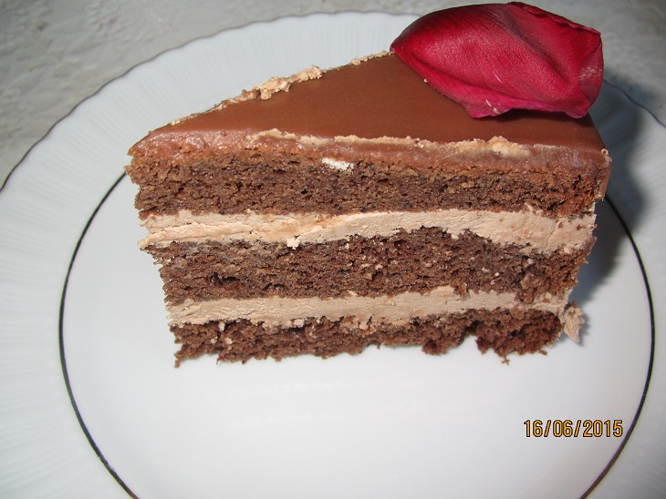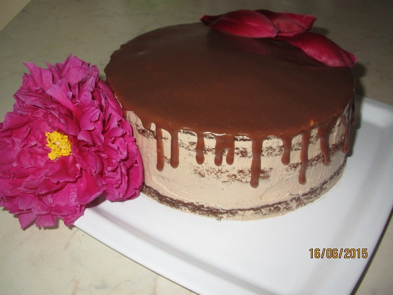 Пекла любимую Прагу для мужа. В ограниченных возможностях на даче, получился тортик без абрикосового джема, и глазурь делала из молочного шоколада. Поэтому по глазури и спрашивать не буду, опыта пока с зеркальной нет.