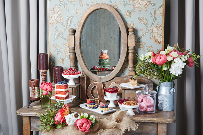 "Воплощение простоты материалов и естественных природных форм"... Все те же тортики, только в разрезе плюс имбирное печенье. Под катом стол №4 с зеркалом и мы, уставшие (особенно я, двое суток, не считая заранее приготовленного мастичного купидона, зефира и макарон) : я, стилист Ирина и декоратор Анна)