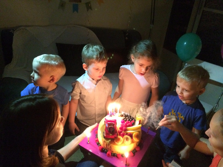 Торты для домашних и друзейтортик муссовый для наших друзей - крошке на 4 годика :) Макквиша - игрушка. Вес 2,8 кг, внутри баварский мусс с шампанским, крем Шантильи с ченой и красной смородиной, желе из черной смородины, зеркальная апельсиновая глазурь. огрехов много - забыла обернуть торт пленкой и бочка не ровные. очень нежный, но шампанское - на любителя. Под катом фотки наших крошек, а также разрезик :)