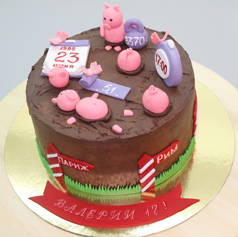 Торт вышел сборный, хотели и метрики и хрюшек и затронуть тему путешествий)))