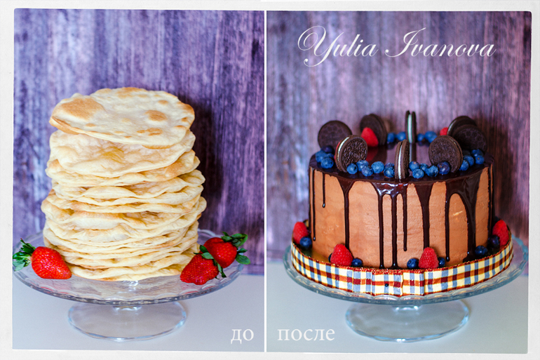 Украшение тортов кремом,шоколадом, фруктамиЭтот тортик для замечательных мальчишек и братьев Сени и Вени заказала их заботливая мама ирина ! Один любит шоколад, другой Наполеон! Нужно было угодить обоим!))