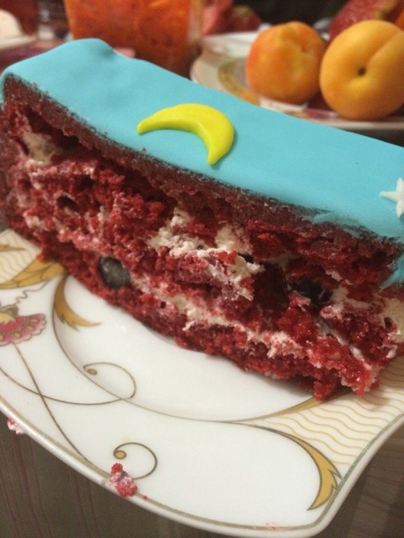 Красный бархат, сливочно-йогуртовый крем, голубика