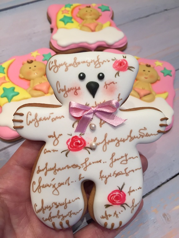 Печеньки просто зяглядение! Поделитесь, а как вы делаете такой рисунок в виде надписей? Через какой то трафарет?