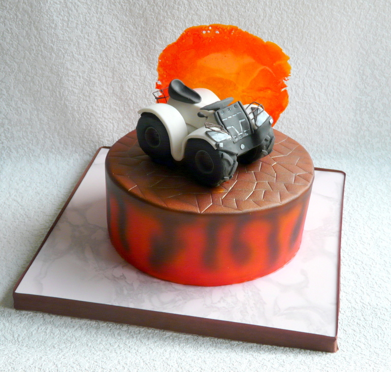 Торты для мужчинПо мотивам фильма Призрачный гонщик, только с квадрациклом. Квадрацикл делала по фото присланному заказчицей.