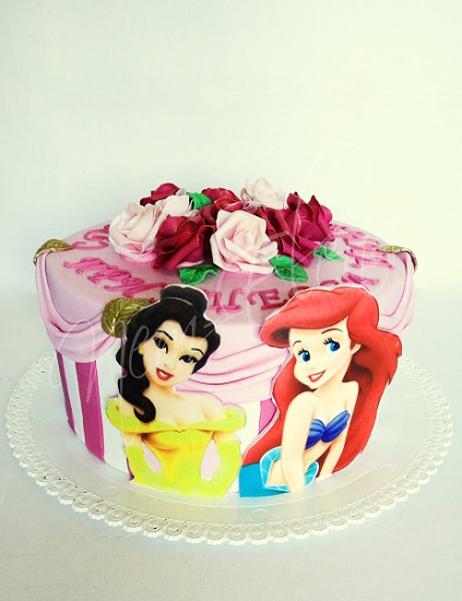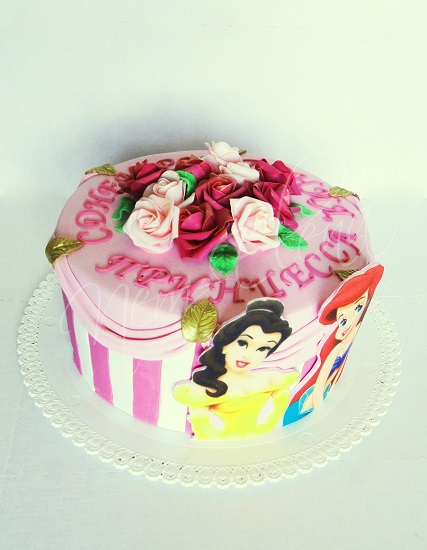 Торты детскиеВот так выкрутилась, когда есть пожелание наличия двух принцесс на торте, но было ограничение по времени (поздно опомнились заказчики).