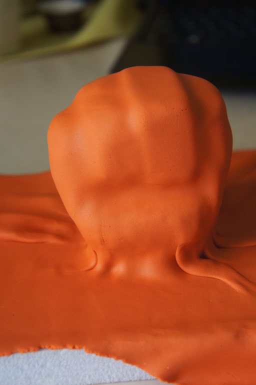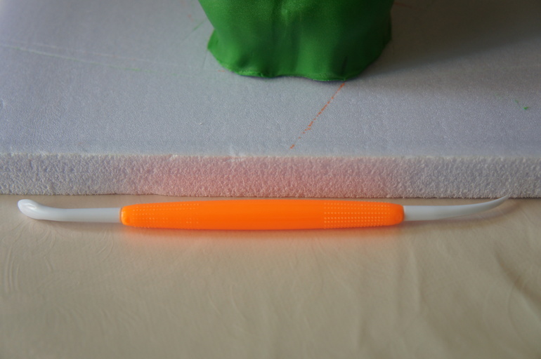 и обтягиваем нашу заготовку, убираем излишки. Следующий этап я опять забыла сфотать, но он очевидный) Берем зеленую мастику и покрываем сверху)))