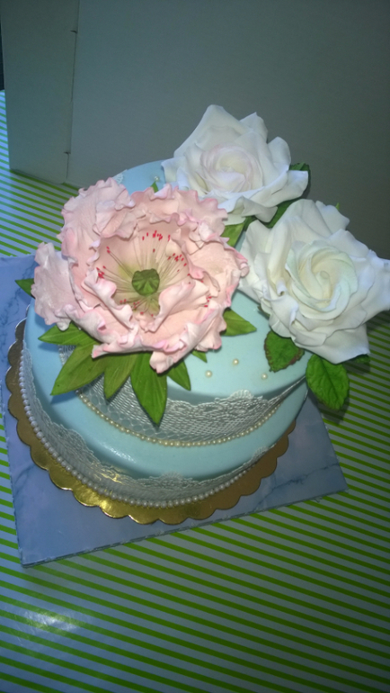 Цветочка как всегда у меня не получилась(((безрукая я)...пришлось лепить цветы из Гум пасты((( пипец пельмени((((
