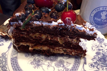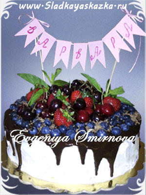 Начинка:шоколадный бисквит, сливочный крем, коньячная пропитка, изюм, курага, чернослив.
