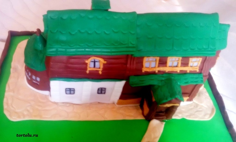 Торт выполнен неаккуратно! Крыша у домиков неровная, над черепицей видимо вобще не заморачивались. Нужно больше уделять внимания деталям.