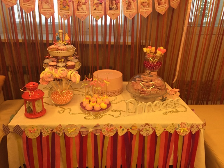 РАЗНОЕВторой мастичный торт и сладкий стол готовила для подруги. Это такое счастье - ожидать вместе с ней ее беременности, наблюдать как она округляется , а тут уже раз - а ей годик. С радостью помогла сделать сладкий стол для них. Праздновали дома.