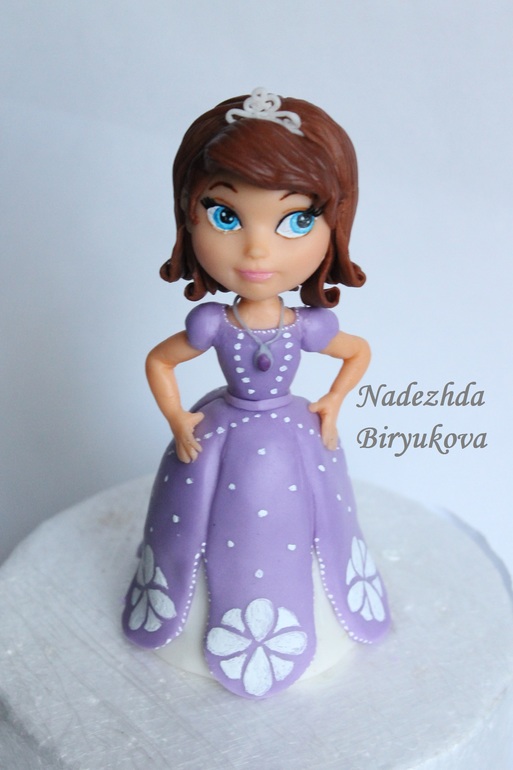 Лицо получилось не похоже на Софию, заготовку из этого молода нужно было доработать и волосы у нее должны лежать на плечах. А у нее одна какая- то прядь на плече, остальные в воздухе. На торте может было бы не так заметно, но когда фигурка выставляется крупным планом, все недостатки сразу бросаются в глаза ((