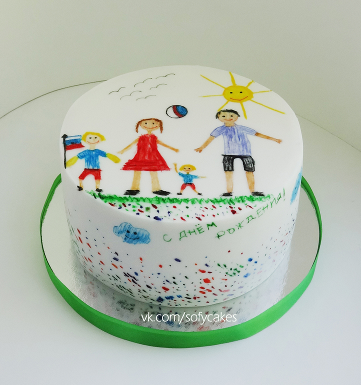 Торт-сюрприз для мужчины на день рождения от его семьи)) Выполнен по детским рисункам. Задумалась, какую же категорию выбрать...