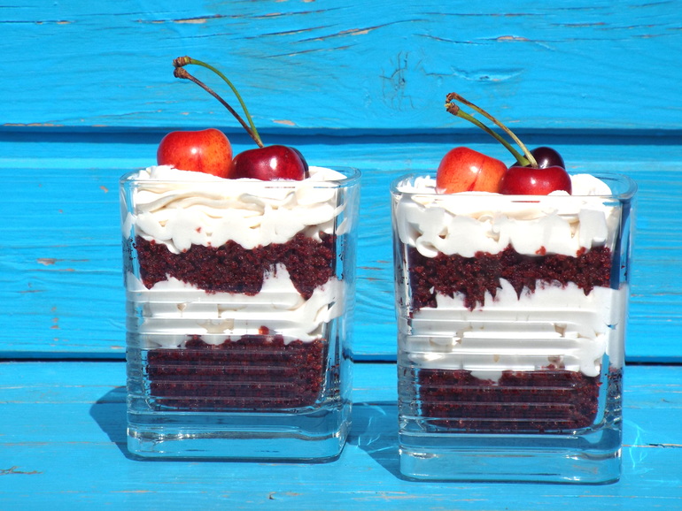 Печенье,пирожные,конфеты, выпечкаКрасный бархат,сырно-сливочный крем,вишня,черешня.
