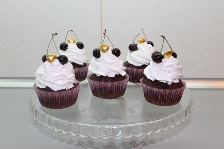 шоколадные капкейки, шоколадный ганаш, вишня, заварной белковый крем)))