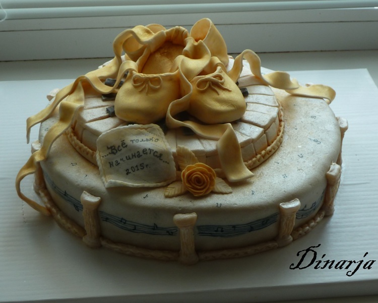 Спасибо огромное за критику, Галина!Именно из-за таких неравнодушных людей к нашему творчеству мы новички и учимся чему-то!Что бы мы без вас делали? я только учусь, я его и двухъярусником если честно не называю)))), я просто хотела, чтобы сверху на торте была имитация клавиш, но никак не ярус)))) поэтому "верхний как бы ярус" — низкий))) эффект неоднородности тона, я наверное и хотела создать, чтобы как камень в природе был неровный, гладкий, а с пупырышками))))для этого использую специально мармышковую мастику)))а на балетки уже пошла нормальная профессиональная покупная мастика, поэтому они однородные))) А по поводу покраски, подскажите, пожалуйста, новичку, как подкрасить нужно было заранее мастику для балеток? как то помню пыталась кандурином золотым подкрасить мастику, но сколько его не добавляла в мастику, было просто бесполезно, получался какой-то грязный оттенок, цвет, ну никак не золотой!Может быть я не правильно, что-то делала?