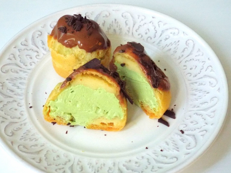 Ванильные капкейки,крем фисташковый муслин от Н.Тарасовой.Разрез под катом)А также профитроли с этим кремом