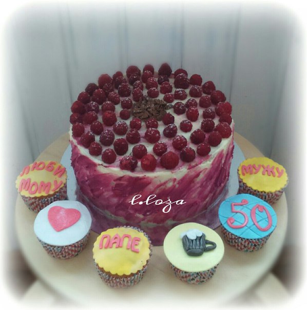 Украшение тортов кремом,шоколадом, фруктамиМега малиновый тортик и капкейки с малиной, внутри торта воздушный бисквит, творожно-малиновый мусс и малина