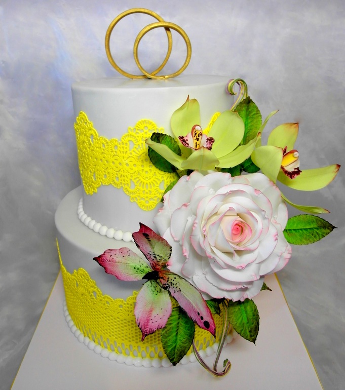 Шикарный торт, шикарный букет! Ну кружево чуть ярковато, но все равно мне нравится))