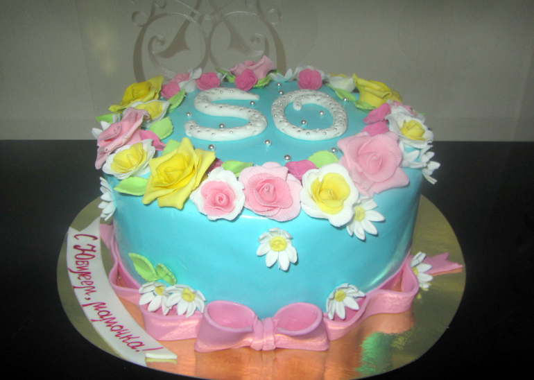 Торты для женщинС этим тортом, как говорится, не задалось( Сначала у меня не получилась картошка для выравнивания, тянулась за ножом, не прилипала, а кое где даже отваливалась кусками. Потом торт я смогла обтянуть только с третьего раза, и то криво((( После всем моих мучений, когда торт был готов, зазвонил телефон , я отвлеклась на одну!!!! минутку. В это время мой мелкий позавтракал цифрами, которые стояли на торте((( Цифры я конечно переделала, но высохнуть они уже не успели((( Крупные бусины тоже не планировались, ими пришлось замаскировать отверстия от зубочисток, которые сынок наделал, пытаясь водрузить остатки цифр обратно на торт)))