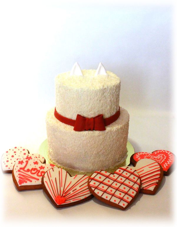 Свадебный тортик необычного дизайна) Начинка - торт Рафаэлло, 6 кг. Прянички как комплимент гостям (всего 40 штук).