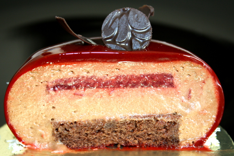 Печенье,пирожные,конфеты, выпечкаОх и долго я решалась. Но вот формы и все ингридиенты были куплены, теория прочитана и решено было приготовить эти пироженки. Тем более повод был небольшой - муж военнослужащий, и вот вчера было 20 лет выслуги! Как же быстро летит время! Делать их для меня оказалось несложно. За основу брала рецепт Эндишефа "Хлоя", мусс и конфи получились ну очень очень нежными. Вкусно, но без холодильника в жару (у меня на кухне 26 градусов) быстро становятся мягкими. Не знаю, как их перевозить, если на заказ делать? Ну и украшение самое простенькое, надо учиться делать шоколадный декор. А в целом я очень довольна результатом!