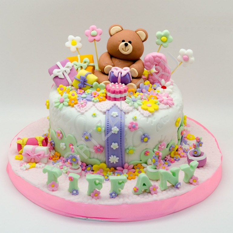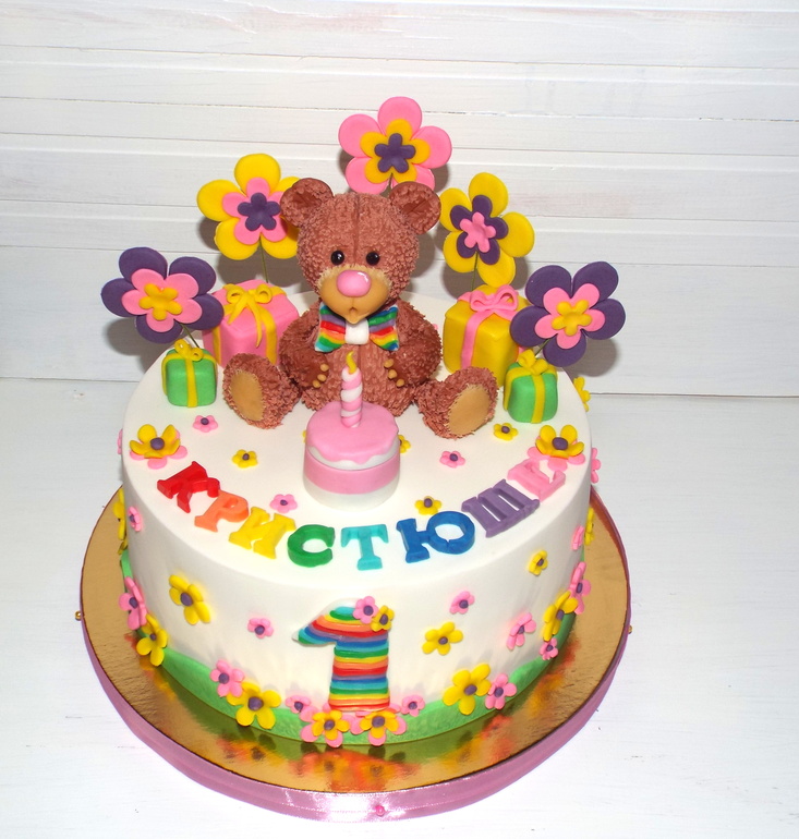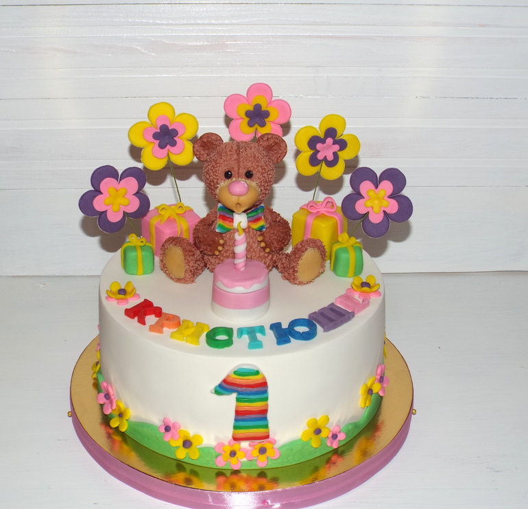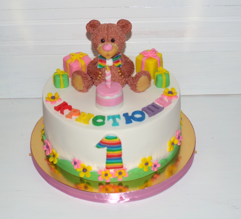 Торты детскиеМолочная девочка,вес 3,4 кг.В мишке ,тортике и подарках -картошка( по желанию заказчика)Несколько вариантов оформления.Этот самый последний,добавляла цветочков,было "пустовато и слишком бело".У именинницы юбка-пачка радуга,я предлагала варианты под радугу,...потом прислали вариант с мишкой(под катом)....
