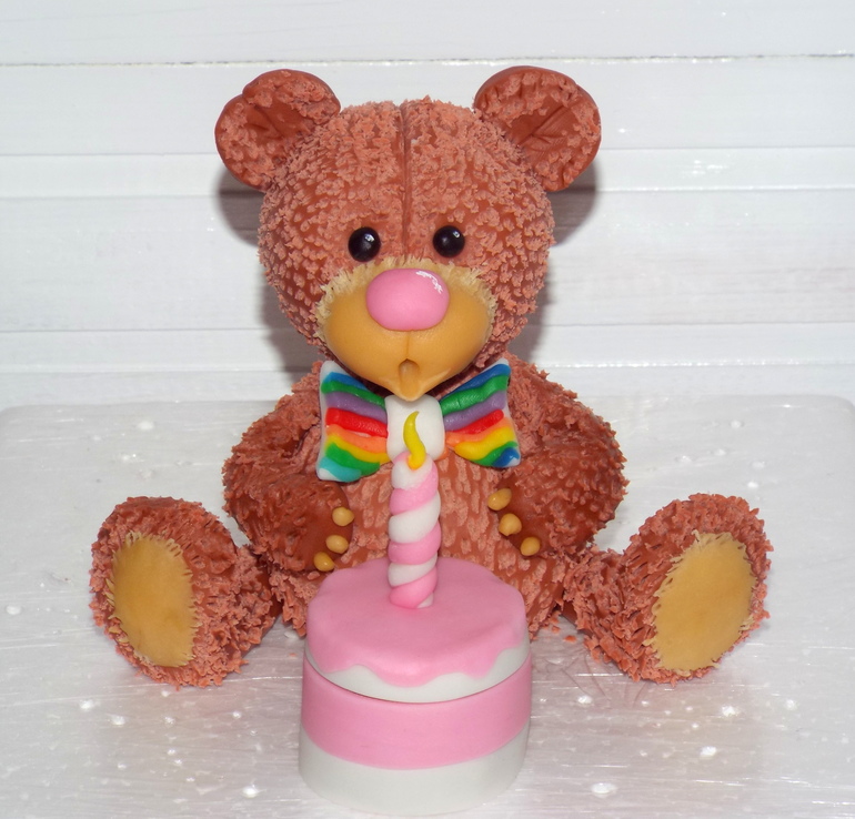 Присоединяюсь к мнению девочек, ваш тортик и ваш мишка мне нравится больше!!!! Мне как-то тоже заказывали тортик с мишкой, причем оформление должно было быть один в один как на фото, так я этого мишку с розами только 3 часа лепила чтобы был похож.