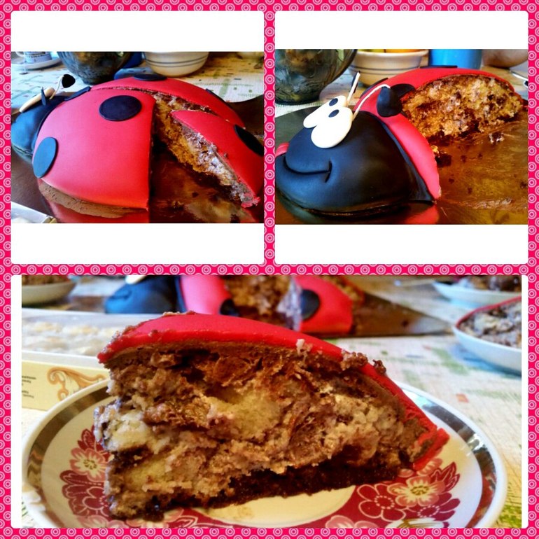 Торты детские2,9 кг. Панчо со свежей вишней. В голове пирожное картошка. Добавлю в категорию Детские, да простят меня модераторы, хотя торт предназначался для мамы моей однокурсницы.