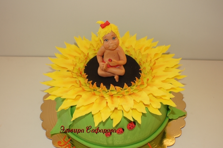 Эльвира, торт замечательный. Очень солнечный! Лепка отличная! Малыш очаровательный — и довольно-таки реалистичный, выражение мордахи вообще класс!