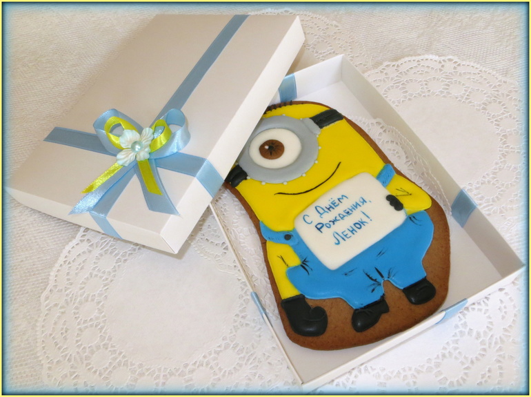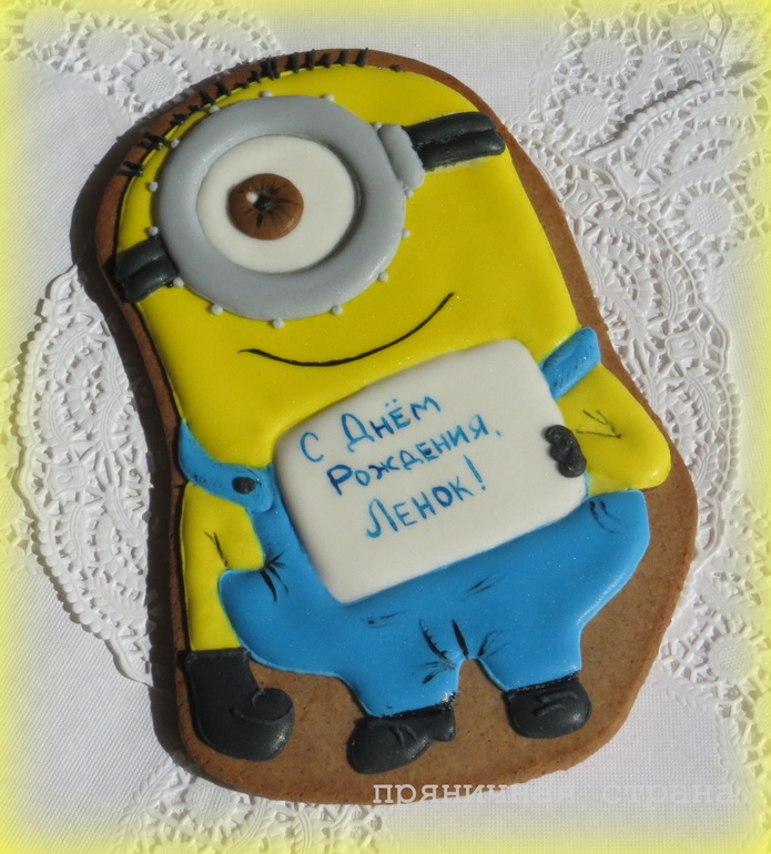 Давно хотела сделать этих маленьких желтых чудиков! Пряник размером: 17.5х12 см.