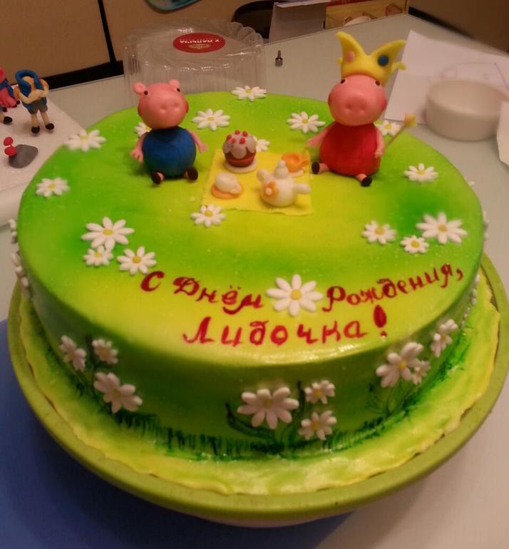 Торт с Пеппой и Джорджем (фотографировала на ходу перед отдачей клиенту)