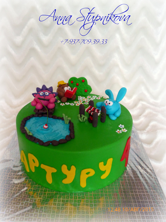 Смешарики лепились в ускоренном темпе с утра. Заказчики успели погулять во дворе, так как пришли раньше назначенного времени. Поэтому весь задуманный декор воплотить не успела....кажется он мне каким-то недоделанным...(( а жаль...
