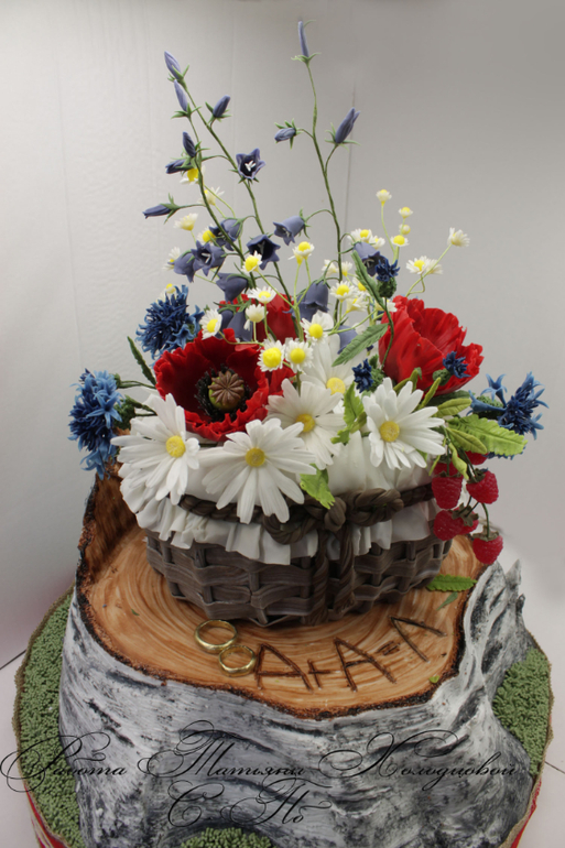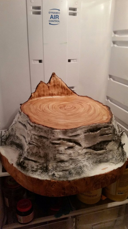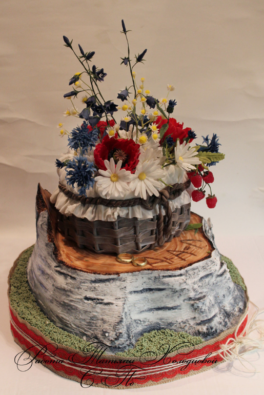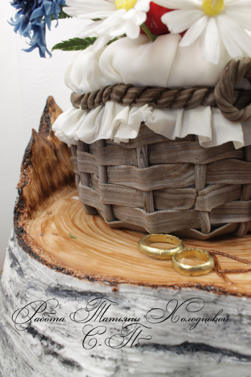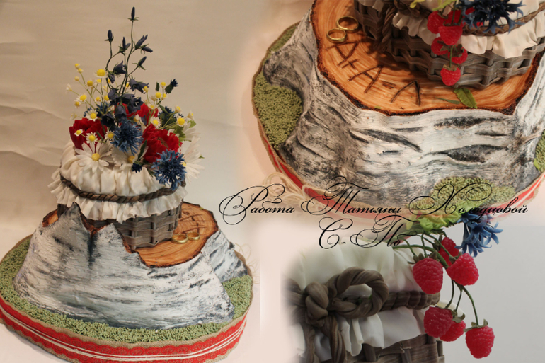 Торт замечательный! Береста на березовом пне - очень реалистичная! А колечки-то, колечки как настоящие!!