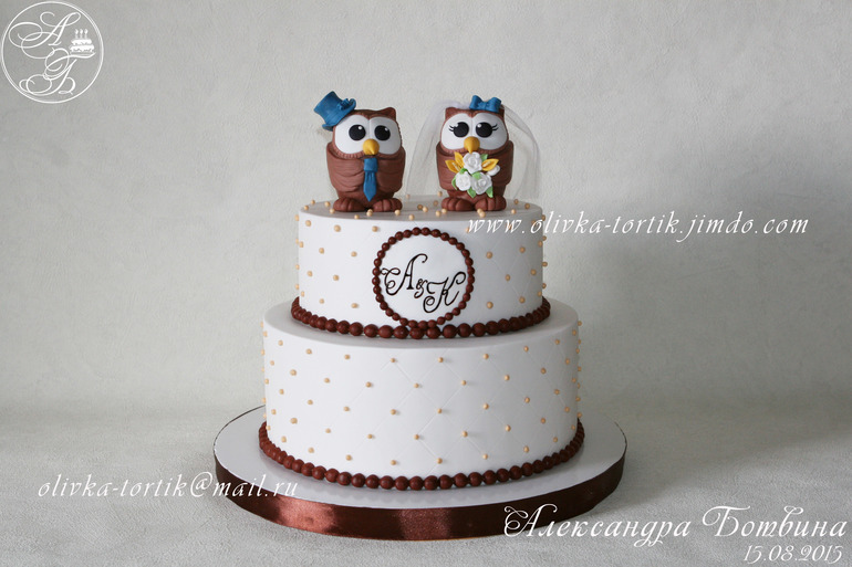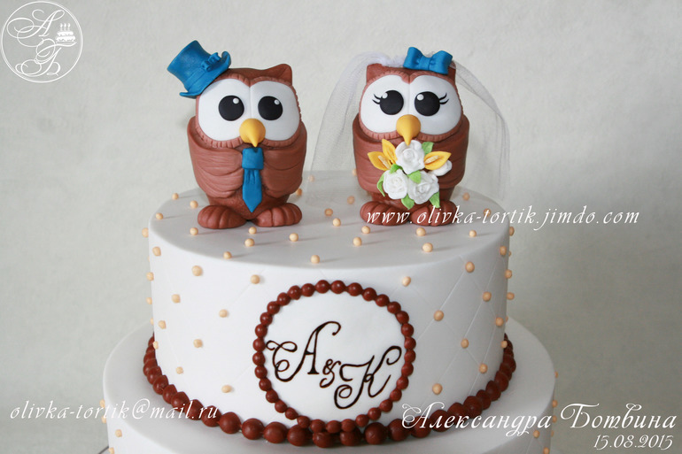 Торты свадебныеДля семьи с фамилией Филины,поэтому были выбраны такие герои для тортика.