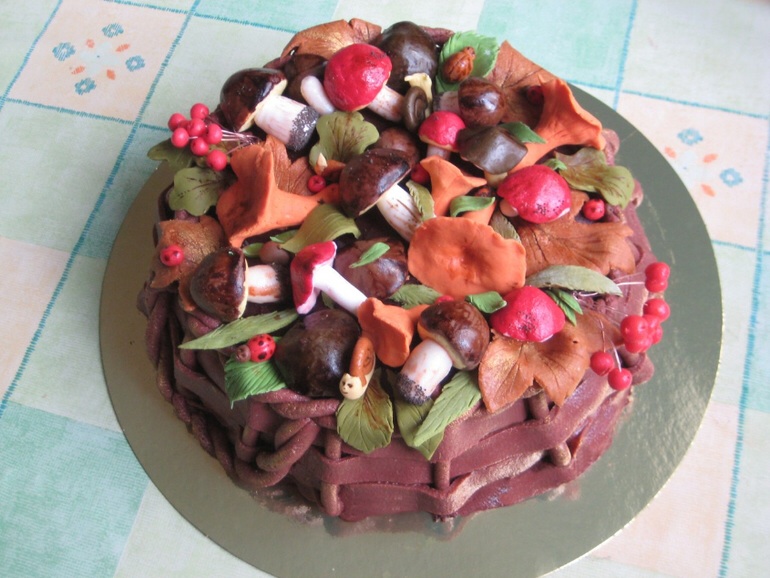 Ребенку 4 сентября будет 4 года. За лето он стал у нас супер грибником ( папа научил, приучил ). Теперь мы эти грибы и рисуем и в книгах разглядываем и названия все знаем. Короче фанат грибов)))). Хочу испечь торт, а на верх положить грибочки, листики, возможно веточки рябины или как на фото пару ежиков. Если можно не очень дорого, с деньгами как то плохо совсем, а праздник с грибами устроить хочется!!!