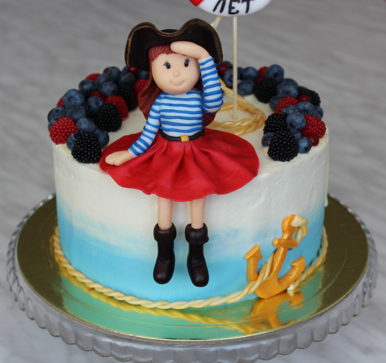 Торты детскиеПервый морской =) Внутри ванильный бисквит, сливки-маскарпоне-вишня.