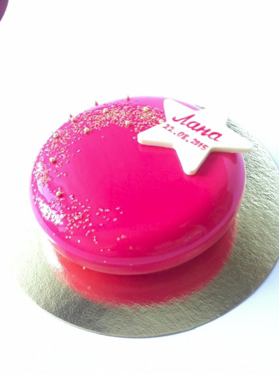 Чизкейк холодного приготовления с кули из черной смородины, зеркальная глазурь на основе белого шоколада, вес 1 кг, цвет - под коляску!