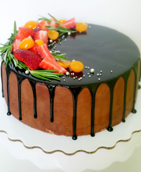 ВОПРОСЫ кондитеровДевочки! подскажите, плиз! буду делать трехъярусник кремовый с шоколадной глазурью и ягодами. а у меня бывает при транспортировке ягоды съезжают. как их закрепить? или глазурь другую сделать. но не представляю , как она подтеками красивыми ляжет... Торт типа такого