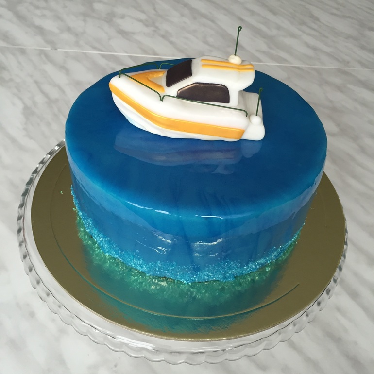 Катя, я помню, ты спрашивала здесь про глазурь зеркальную и мастику! Ну, как? Не течет? Или подложила под катер что-нибудь (шоколад!)