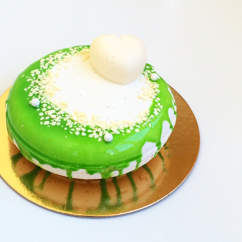 Нравится мне делать такие торты все больше и больше))) внутри мусс карамельный, конфи клубника и груша, миндальный штрейзель и бисквит! Покрыт велюром и глазурью...