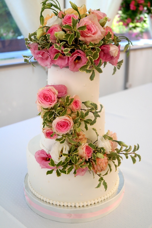 Торты свадебныеКлассический свадебный торт с живыми цветами