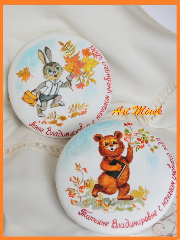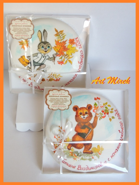 ПряникиАроматные и мягенькие имбирные пряники . Роспись выполнена вручную пищевыми красителями. Прекрасное подарочные дополнение к традиционному букету для любимого учителя