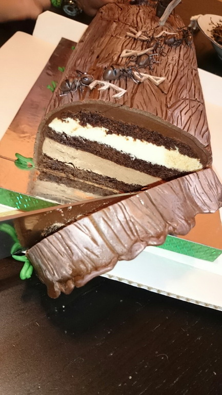 Торты детскиеТортик шоколадный на базе Три шоколада, только два -молочный и белый и три коржа. 2 с небольшим кг. Как хорошо, что есть еще дети, которые хотят не только мультяшных героев. Его желание было: " Семь муравьев и один чтобы главный, и бревно!" Подкатом разрез от клиентов и крупный план.