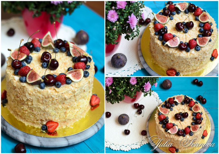Украшение тортов кремом,шоколадом, фруктамиСтарый добрый "Наполеон" в классическом оформлении! Все уже соскучились по таким тортикам, аппетитным и очень уютным, как дома, как у мамы...