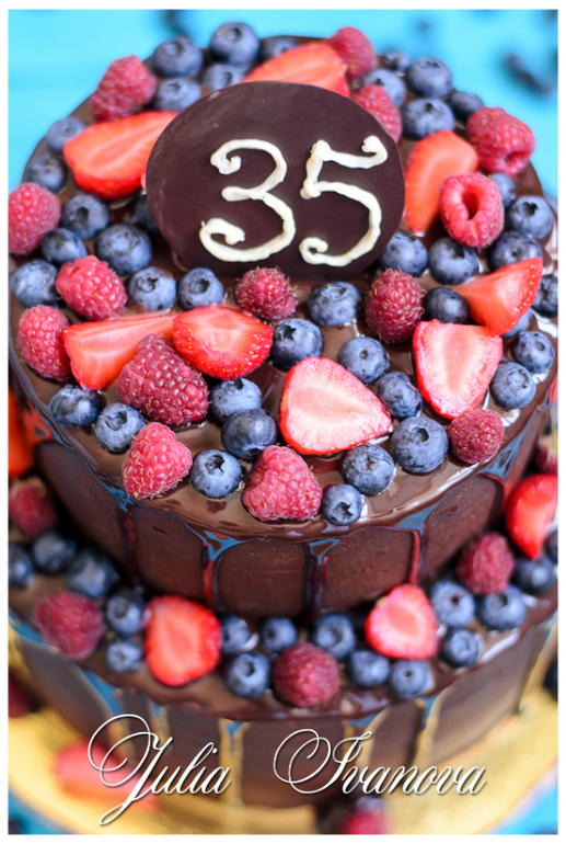 Украшение тортов кремом,шоколадом, фруктамиТорт для мужа на юбилей заказывала прелестная девушка и замечательная жена для своего мужа. Именно такой надписью торт дополнился в окончательном варианте! Первый раз отливала из шоколада круг и писала на нем, есть недочеты, опыт себе в копилочку))).