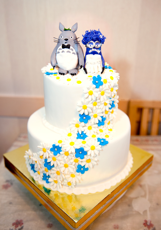 Торты свадебныеЮбилейный, ровно год прошел как я сделала первый мастичный торт. Вес 6 кг., размеры 25 см. нижний ярус, 16 верхний, высота 11см., внутри панчо - с ананасом, вишней и орехами. Идея оформления принадлежит невесте). Сначала заказ был на двух злобный миньенов, потом концепция изменилась, и добавился Тороро. Есть косяки, но я работаю над этим.))