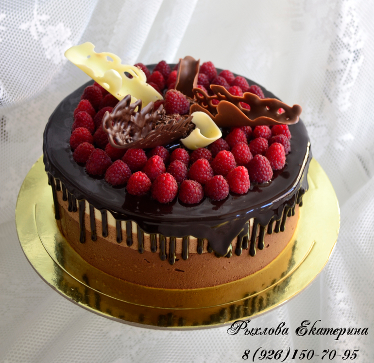 Чередование шоколадных и ванильных коржей, сливочно-творожный торт и свежая малина, 2,9 кг