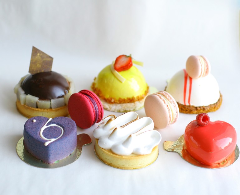 Печенье,пирожные,конфеты, выпечкаКарамель-груша-крем брюле, Экзотик, Honeymoon, Ежевичный чизкейк, лимонная тарталетка, мессидор и макаронс для оттенка.